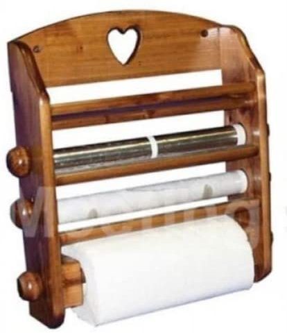 Portarotolo – tris di rotoli in legno scuro pratico ed utile, da appendere a muro.