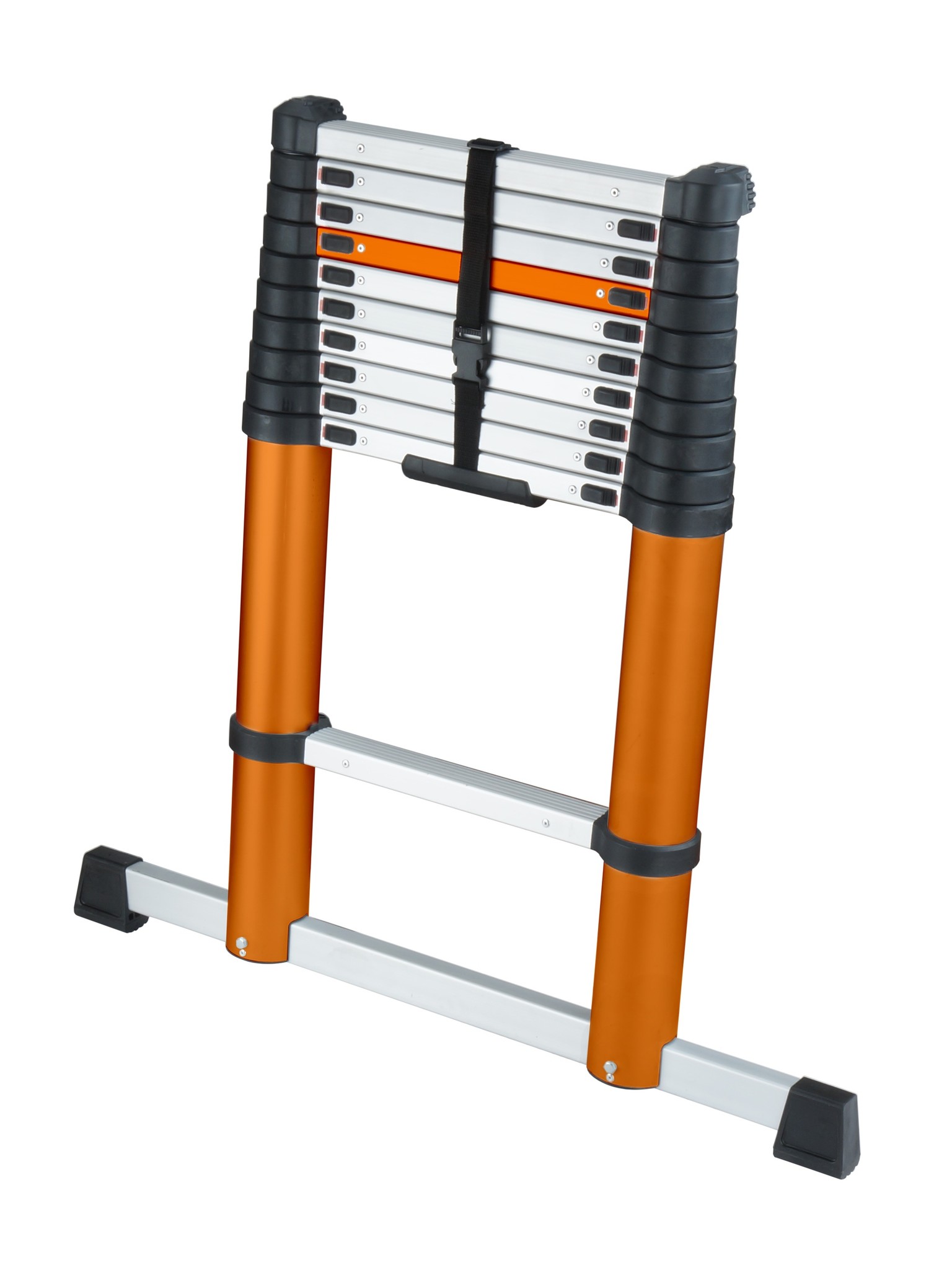Le scale telescopiche sono realizzate in alluminio di alta qualità in un design compatto e poco ingombrante e sono facili da maneggiare. Le scale sono facili da inserire e da estrarre a qualsiasi altezza desiderata. I pioli hanno un profilo antiscivolo che rende possibile una postura di lavoro stabile.